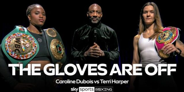 Caroline Dubois e Terri Harper se enfrentam sem as luvas enquanto se preparam para se enfrentarem no ringue novamente.