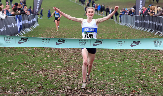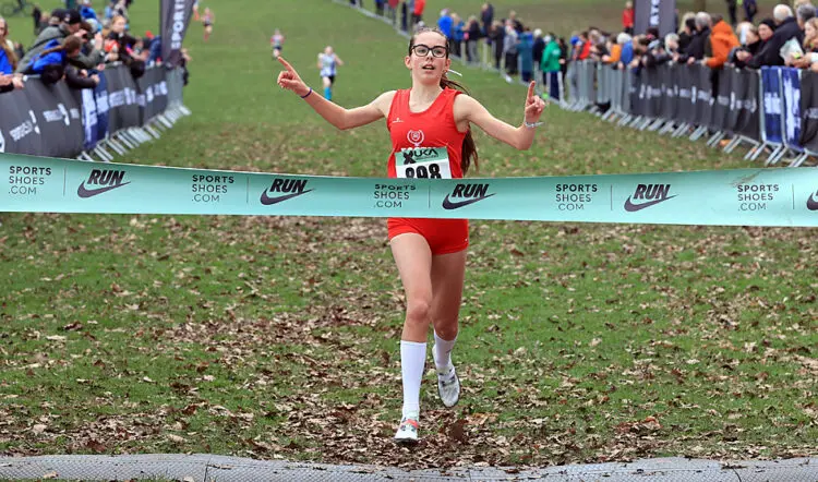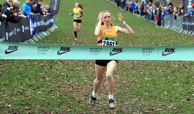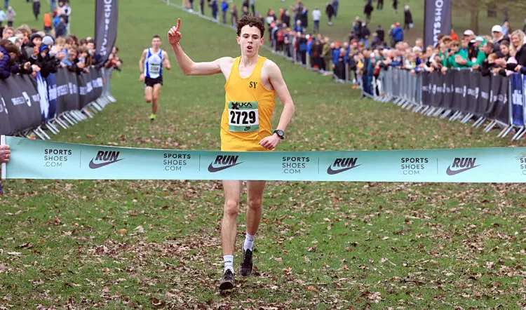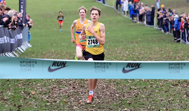 Lennon então subiu a colina final em direção ao hall da fama de Wollaton antes de comemorar a chegada e a vitória sobre o jovem de 17 anos de Surrey, que venceu o evento de 17 anos aqui no ano passado.