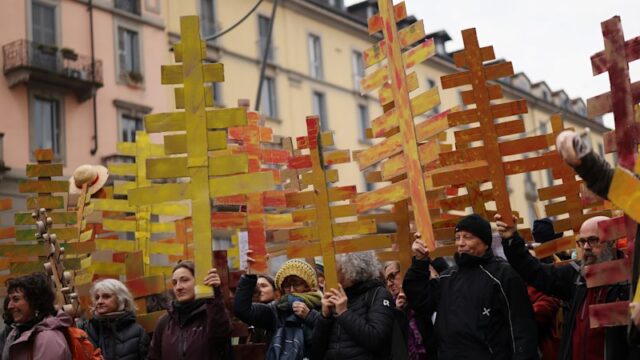 Uma mulher mais jovem, Rosella, também apoiou a Palestina, mas se opôs às Olimpíadas de Milão Cortina por vários motivos. “Acho que todas essas lutas estão conectadas”, disse ela.
