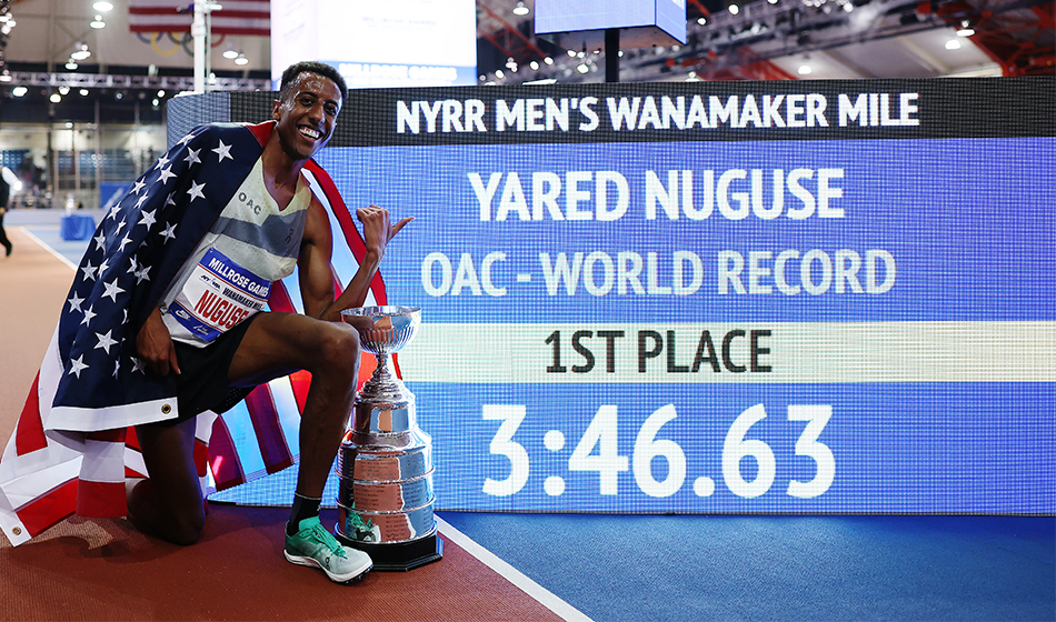 Yared Nuguse estabeleceu o recorde mundial de milhas indoor no ano passado com 3m46s63, uma marca que durou apenas cinco dias quando Jakob Ingebrigtsen correu 3m45s14 em Liévin.