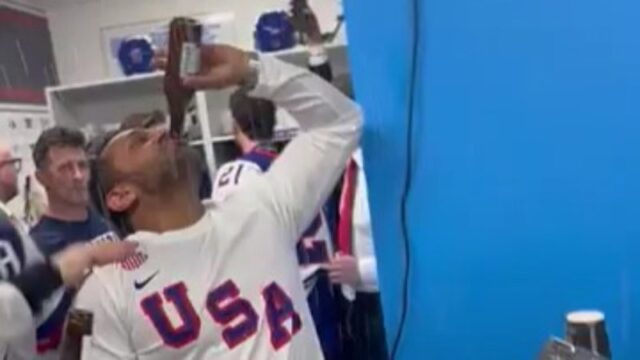 A seleção masculina de hóquei dos EUA contou com a presença de um convidado especial, o diretor do FBI Kash Patel.