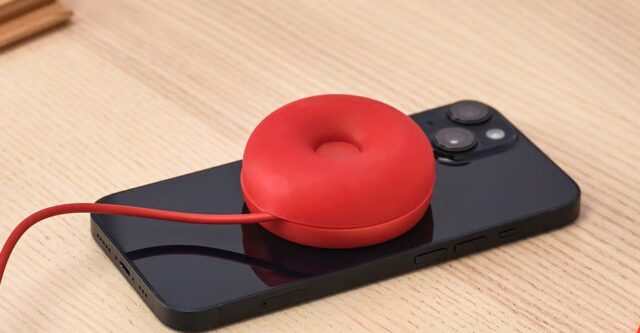 O destaque decisivo da nova coleção é Carregador sem fio Västmärke por US$ 9,99 Parece um donut vermelho, faltando apenas a cobertura e os granulados. É feito de silicone e possui um design que envolve e esconde o cabo de alimentação USB-C integrado. Você pode usá-lo como um carregador sem fio independente em sua mesa ou mesa de cabeceira, mas como é compatível com suportes magnéticos como MagSafe da Apple e Pixelsnap do Google, esta versão do Västmärke também pode funcionar como um PopSocket improvisado para segurar seu telefone com uma mão.
