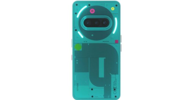 O Nothing Phone 3A Community Edition atualiza o visual monocromático usual do Nothing com um design inspirado nos anos 90 com toques de cor. Atualizamos a placa traseira transparente do 3A básico para um tom azul-petróleo e adicionamos botões amarelos e magenta.
