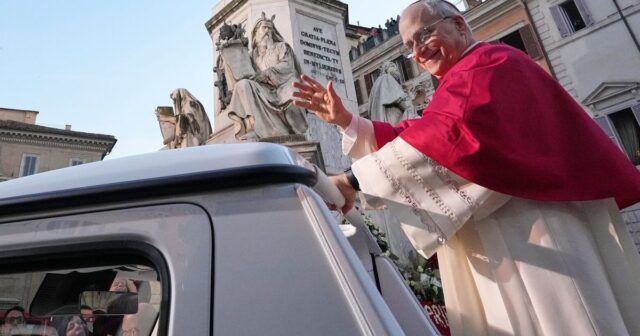 Leo cumprimentou milhares de simpatizantes que enfrentaram o frio para ver o Papa americano fazer sua primeira visita à estátua. Eles fizeram um cruzeiro de carro-baleia pelo centro histórico de Roma, projetado para dar início à temporada de compras natalinas.