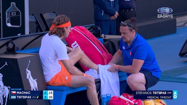 Preocupações enquanto Tsitsipas pede intervalo médico