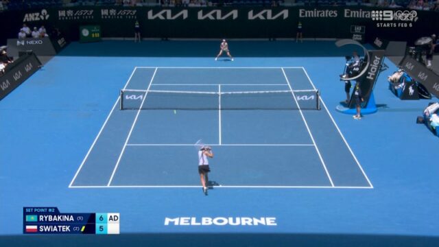 Elena Rybakina fechou o primeiro jogo das quartas de final ao quebrar o saque de Iga Swiatek na Rod Laver Arena.
