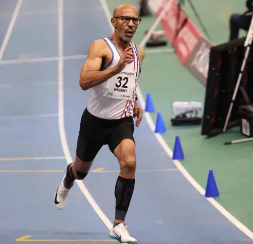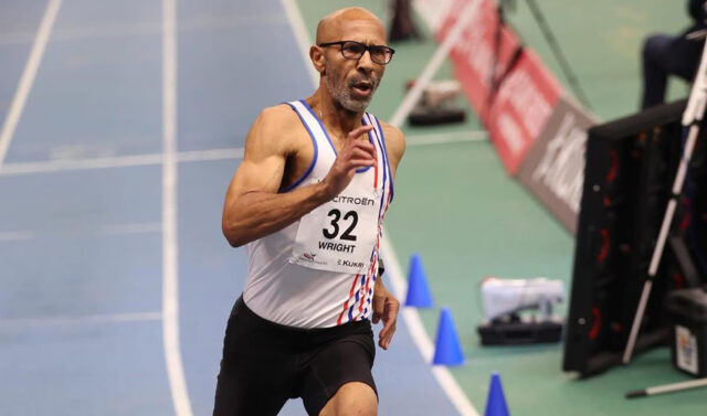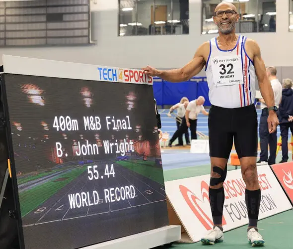 Wright correu os 400m M65 em 55,44, o que melhorou significativamente o recorde mundial indoor do alemão Guido Mueller, que correu 56,63 há 22 anos.