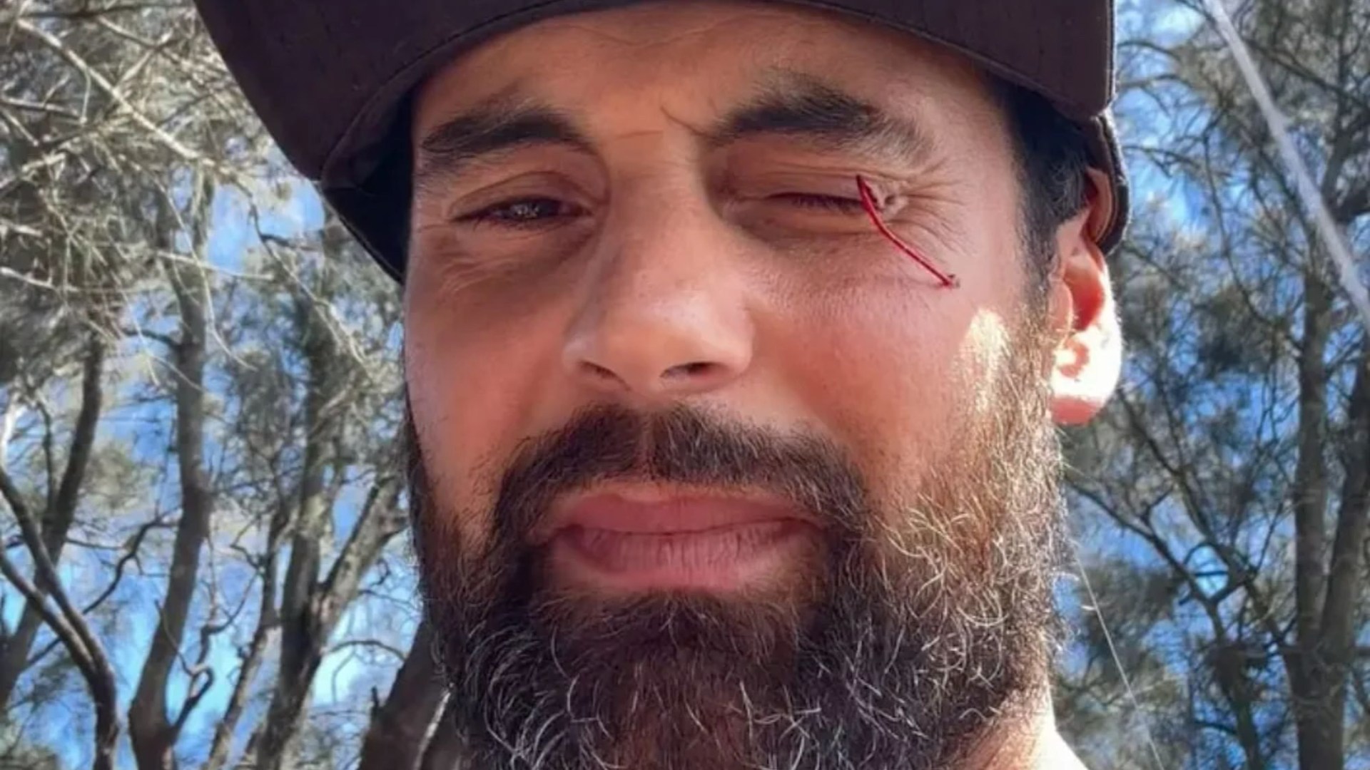 CASADO À PRIMEIRA VISTA A estrela australiana Cam Merchant sofreu um terrível acidente de pesca quando o anzol de sua vara de pescar ficou preso em seu olho esta semana.