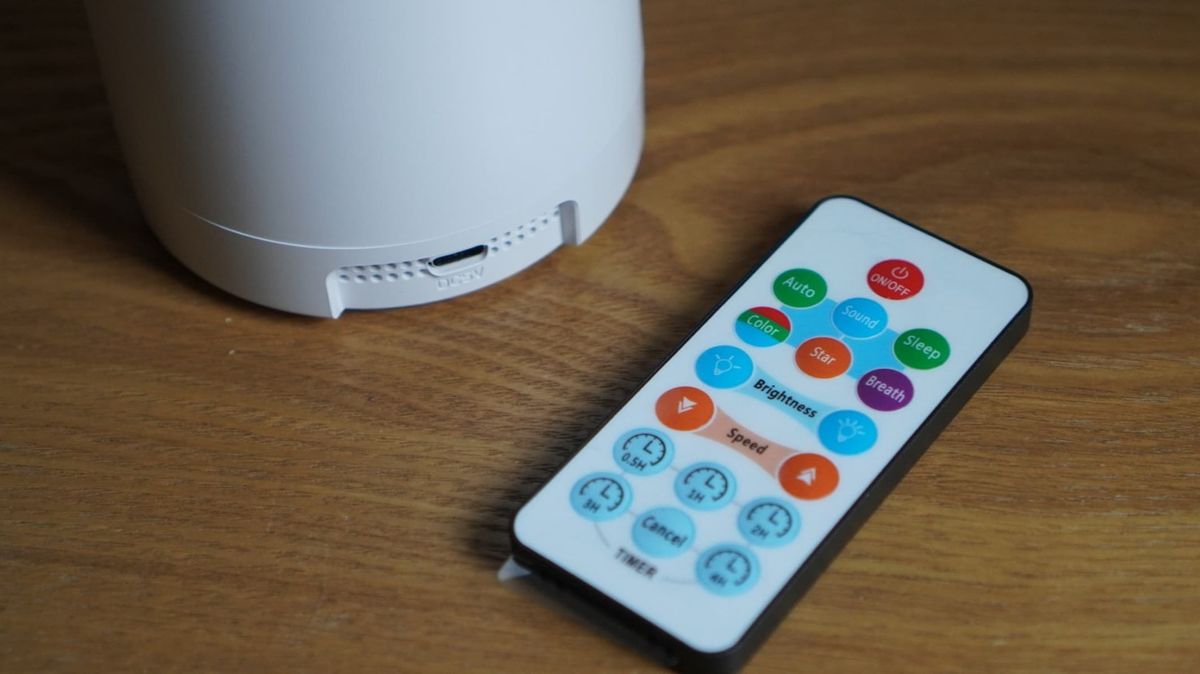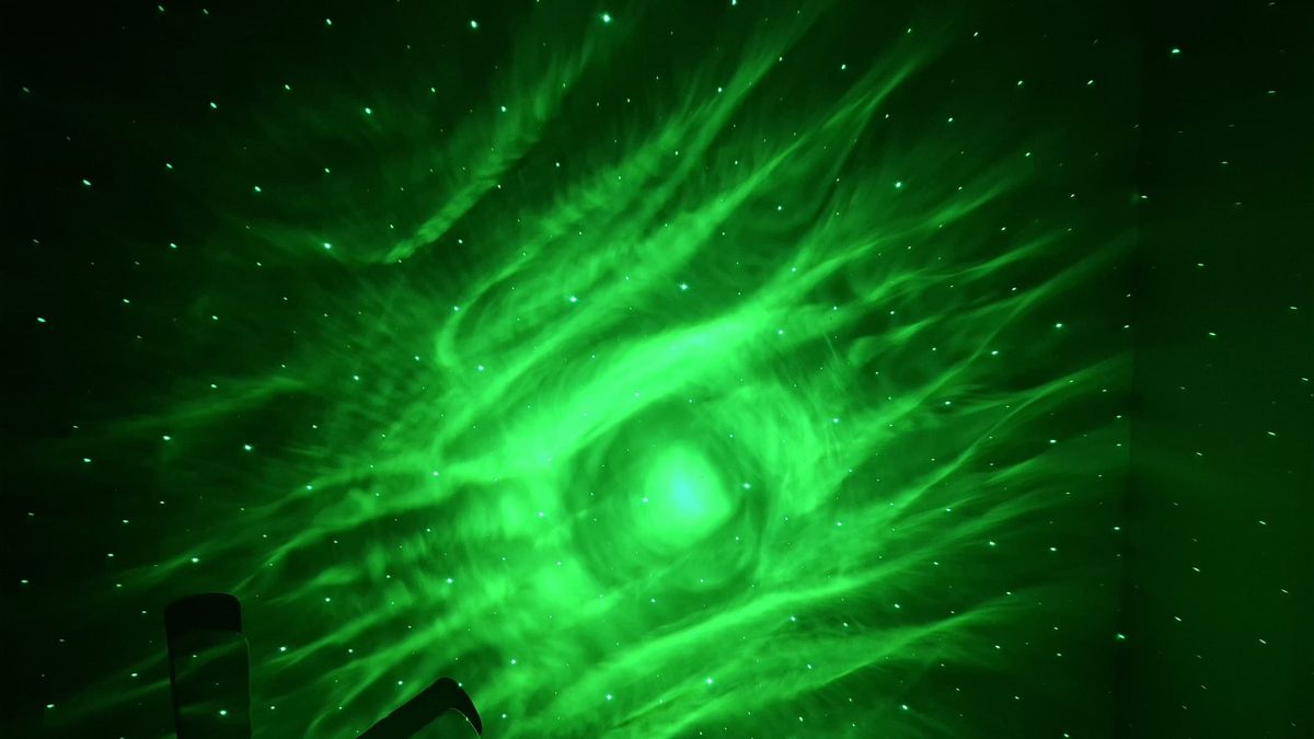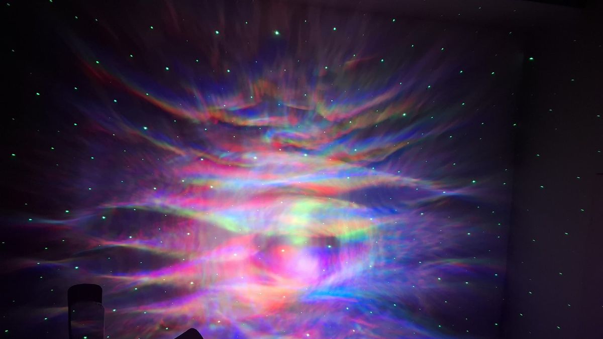 Não há alto-falante embutido aqui, mas o projetor Herhoter Galaxy tem todos os recursos que você esperaria quando se trata de projeções: rotação, canais multicoloridos, estrelas que podem ser ligadas e desligadas e um temporizador. Existem também algumas opções visuais interessantes, como fazer as auroras inspirarem e expirarem e a capacidade de aumentar e diminuir a velocidade com que elas giram.