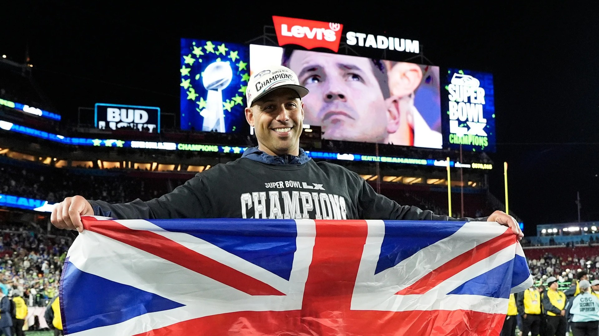 O coordenador defensivo do Seattle Seahawks, Aden Durde, carregou a bandeira britânica em campo após vencer o Super Bowl LXCrédito: AP