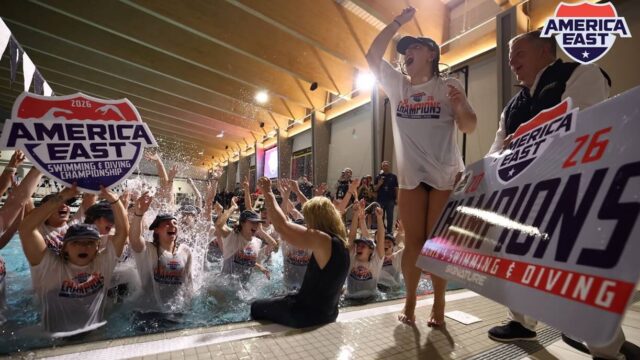 A America East Conference coroou dois novos campeões de equipes no fim de semana em seus campeonatos de conferência. Do lado feminino, a Bryant University garantiu o título por uma margem de mais de 100 pontos sobre o segundo colocado New Hampshire, seguido pelo terceiro colocado Vermont.