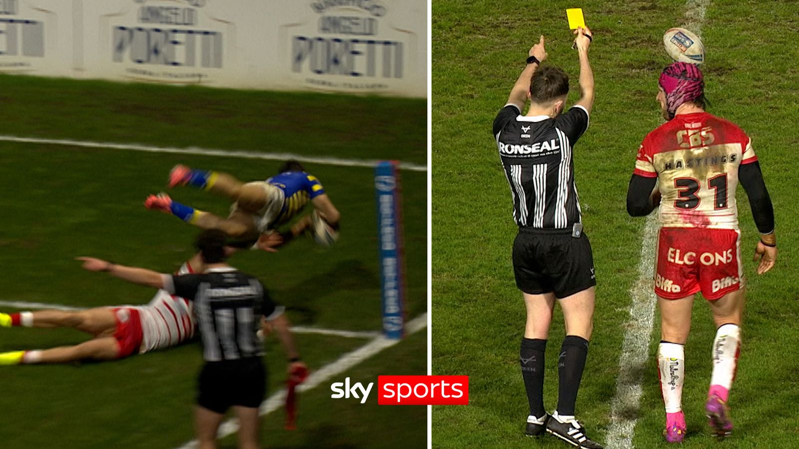 ‘Cartão amarelo!?’ | Warrington marcou uma tentativa acrobática e Hastings foi considerado culpado pela mesma jogada!
