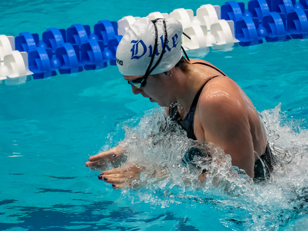 As mulheres Blue Devil venceram o revezamento medley 200 de Madelyn Meredith, Kaelyn Gridley, Urze Branca e Parede Tatum terminou em 1m37s12. Gridley, em seu último encontro em casa em Duke, conseguiu menos de 1:00 nos 100 metros peito com o tempo de 59,99. Wall ficou em primeiro lugar nos 50 livres (21,94) e 100 livres (47,94), e liderou a vitoriosa equipe de revezamento de 400 livres. Clara Logan, Emily Gantry e White nadou na equipe que marcou 3m18s96.