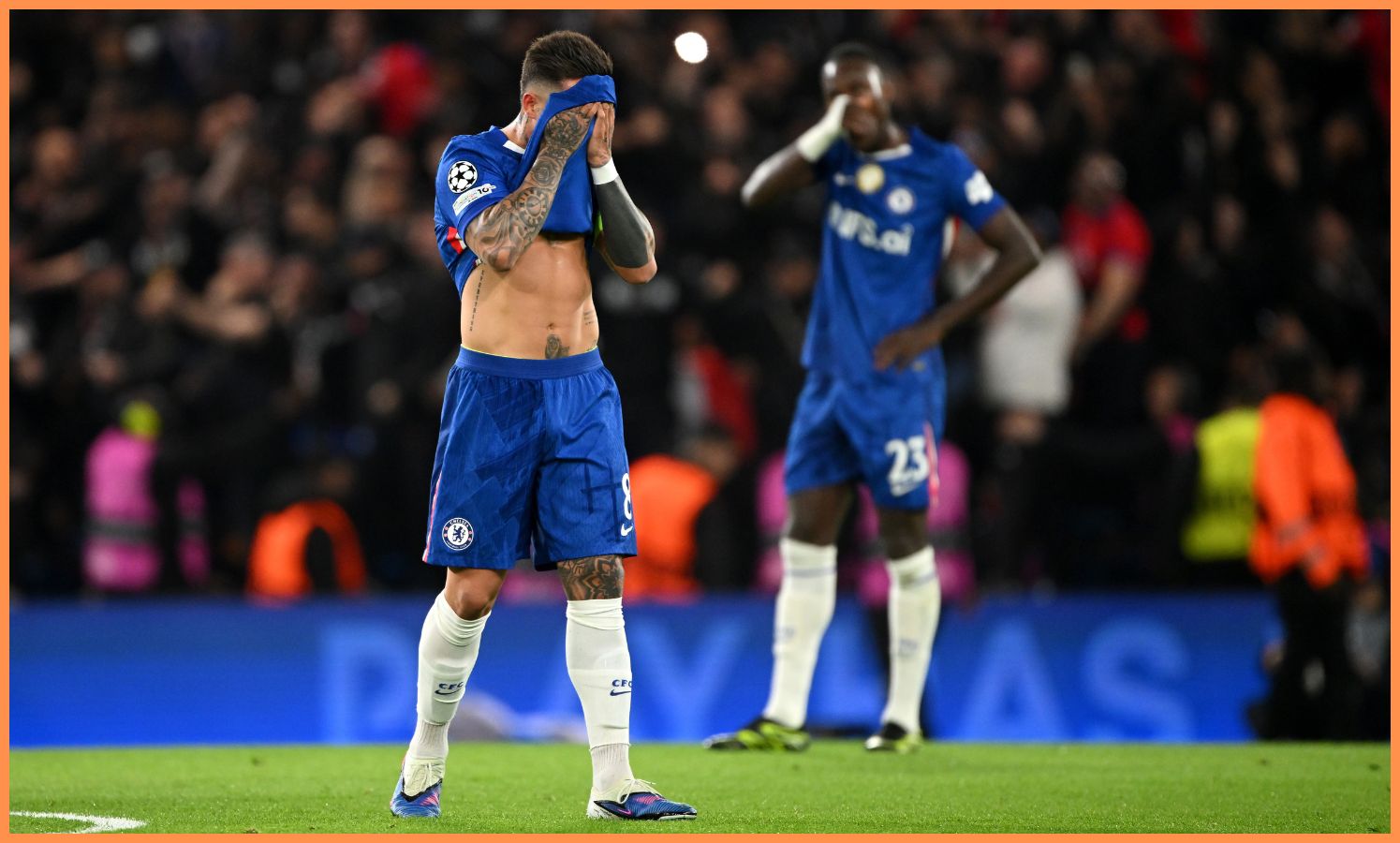 Enzo Fernandez reage após derrota do Chelsea para o PSG (Foto: Mike Hewitt/Getty Images)