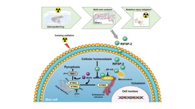 E o experimento revelou como funciona o peptídeo-2 da pele de rã induzido por radiação. Tem como alvo uma enzima chamada esteril-coenzima A dessaturase 1, que desempenha um papel importante na produção de ácidos graxos, blocos de construção para membranas celulares e armazenamento de energia. Ao interferir com esta enzima, o peptídeo reduziu a produção de certos ácidos graxos. Isto bloqueou a ativação de uma via responsável pela indução da inflamação após a radiação. “Esta via, conhecida como estimuladora da via do gene do interferon, é importante na forma como as células respondem ao estresse da radiação”, explicou o professor Zhang. “Ao influenciar esse processo, o peptídeo ajuda a proteger a pele de maiores danos.”