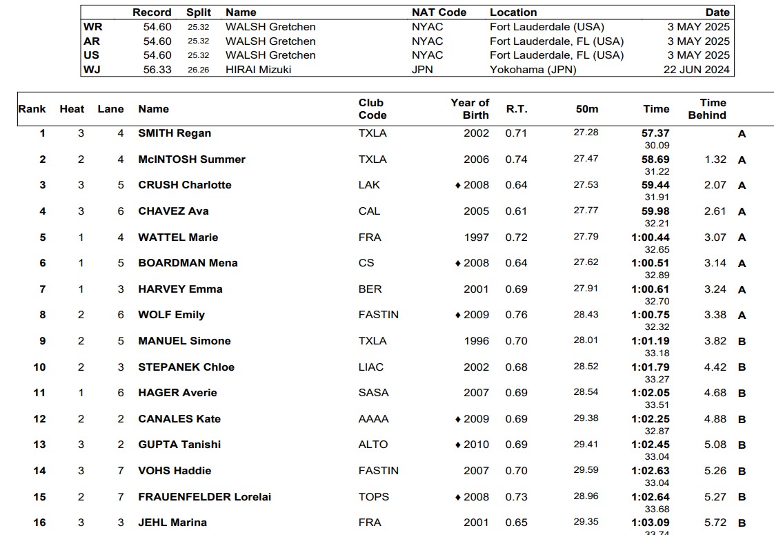 A esperada batalha nas 100 borboletas parece acontecer esta noite como Regan Smith e Verão McIntosh vá cara a cara.