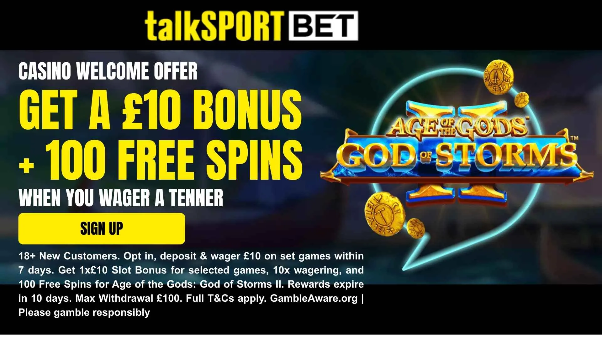 - 100 rodadas grátis: Esses valores são creditados 24 horas depois Seu primeiro bônus é concedido. Eles são especificamente para Era dos Deuses: Storm God II e vale 5p por rodada.