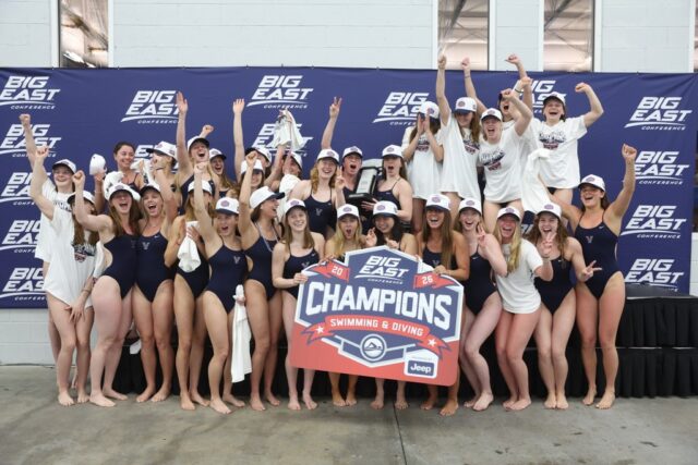 A equipe feminina de natação e mergulho de Villanova conquistou seu 13º título consecutivo no Big East com pontos recordeenquanto Georgetown conquistou seu quinto título masculino consecutivo.