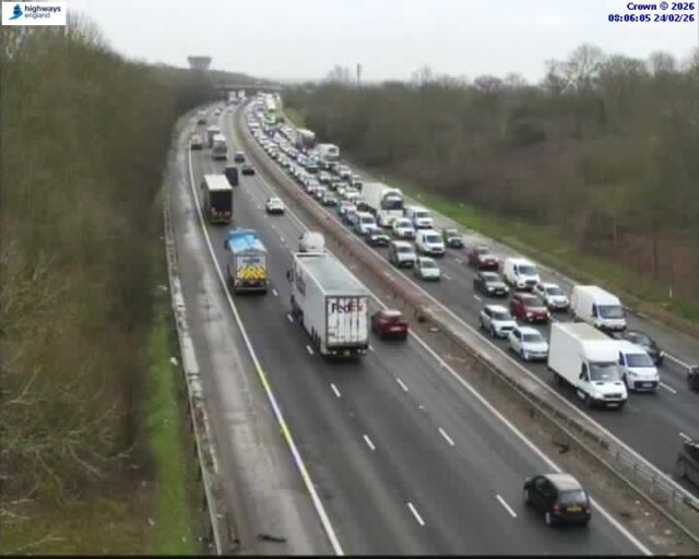 O incidente causou congestionamento de tráfego no trecho sul da M11.Crédito: Rodovias Inglaterra