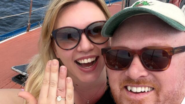 O crítico de restaurantes compartilhou uma série de fotos de seu pedido romântico, no Brasil, incluindo uma dele ajoelhado em uma cadeira. iate.