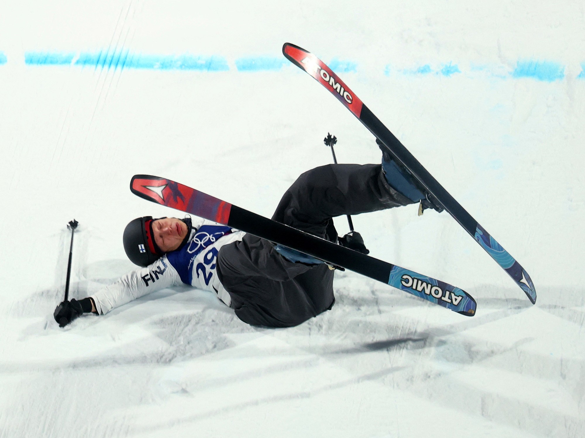 #Internacional ⛷️🇫🇮 || O esquiador finlandês Elias Lajunen sofreu uma queda em 15 de fevereiro de 2026 durante a grande rodada de qualificação aérea masculina nos Jogos Olímpicos de Inverno de Milão-Cortina de 2026. De acordo com os últimos relatórios, o atleta… pic.twitter.com/0LJUwEriPg