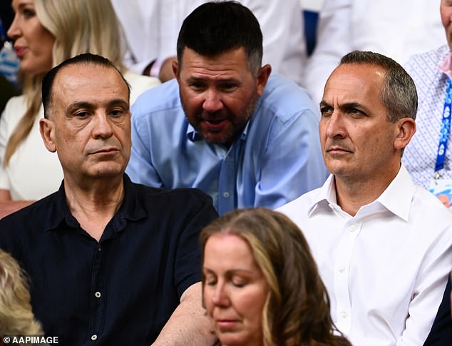 O voo que transportava Peter V’landys (esquerda) e Andrew Abdo (direita) para Las Vegas foi forçado a retornar ao aeroporto de Sydney