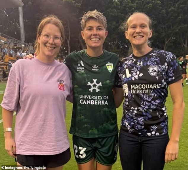 Ela postou sobre o evento no Instagram, escrevendo: ‘Tive que conhecer a incrível Michelle Heyman hoje depois de um emocionante jogo de futebol e se ofereceu para fazer parte da guarda de honra do The Flying Bats.’