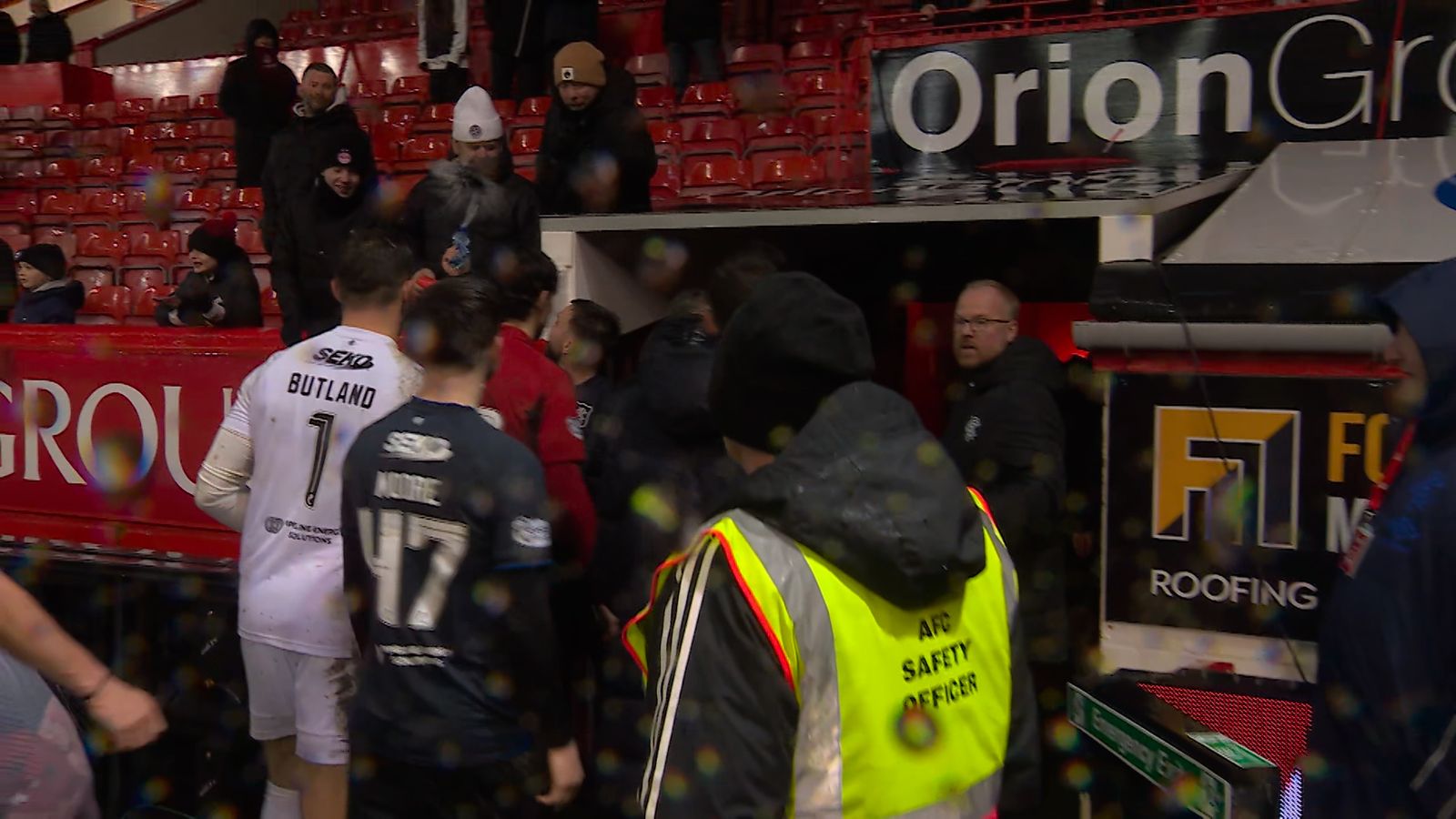 Nicolas Raskin jogou água em um torcedor do Aberdeen após a vitória do Rangers por 2 a 0 sobre o Pittodrie no domingo.