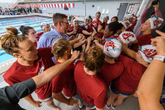 Quando penso nos meus dias de campeonato de conferência, as memórias que me vêm à mente raramente são de tempos ou lugares. São as viagens de ônibus. A piada interna. Os momentos de silêncio na piscina de aquecimento, encostado nos companheiros.