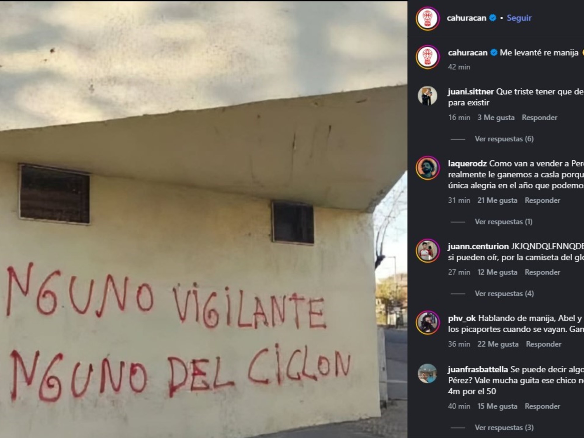 A postagem mostra pichações em uma parede com a frase: “Nenhum dos guardas, nenhum do ciclone“, acompanhado na descrição por um”Eu me levantei pela alça“A mensagem, breve mas contundente, foi interpretada por muitos como uma trapaça mais típica de um relato partidário do que o oficial do clube, o mesmo que deveria sustentar o lema ‘somos rivais, não inimigos’.