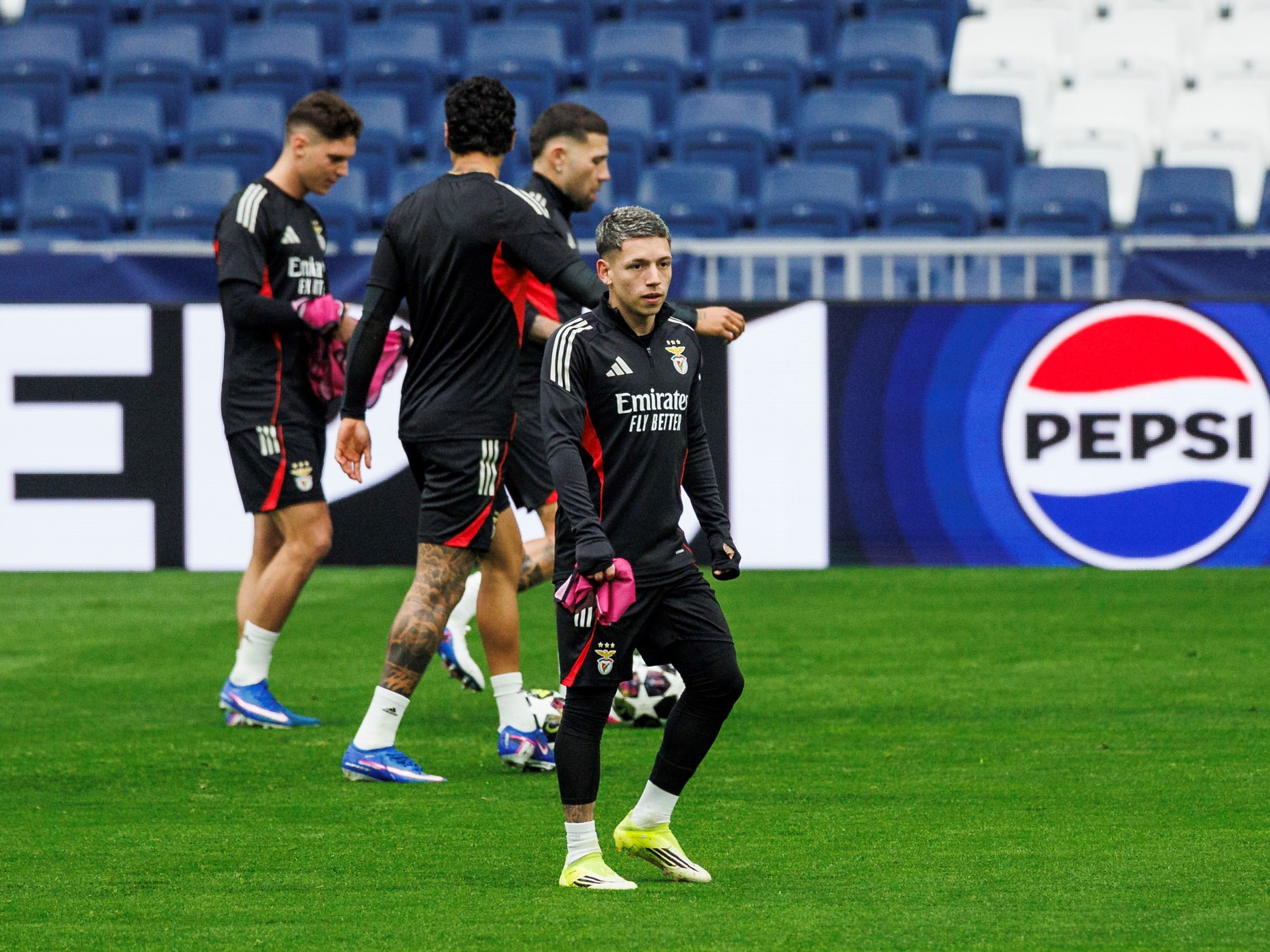 Mourinho está suspenso para a segunda mão, pois foi expulso no final da primeira mão por protestar contra o árbitro. Mas também viajou para Madrid com Prestianni, que treinou com o resto da equipa na quarta-feira, antes de a UEFA rejeitar o apelo do seu clube.