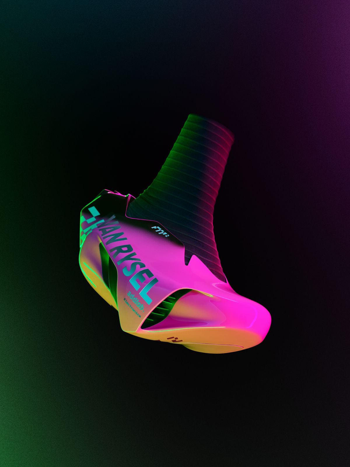 A sola fortemente esculpida é esculpida diretamente na manivela de carbono Praxis. torne-o um recurso permanente Ele é alimentado por uma bateria SRAM, que normalmente é projetada para alimentar um desviador sem fio SRAM, mas também alimenta um motor dentro do sapato para afrouxar e apertar os cadarços. e era controlado por rádio através do referido cockpit.