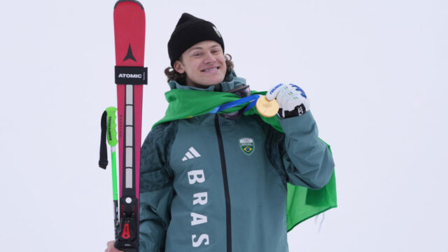 Lucas Pinheiro, do Brasil, Braathen fez história no esporte sul-americano no sábado. Porque seu samba de esqui o levou a uma impressionante medalha de ouro no slalom gigante em uma nevasca nos Jogos de Inverno de Milão Cortina.