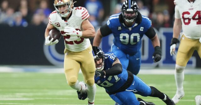 A corrida de TD de 1 jarda de Jonathan Taylor no início do quarto período reduziu o déficit de Indy para 34-27, mas os 49ers diminuíram a diferença com um passe para touchdown de 9 jardas para McCaffrey faltando 7:37 para o fim do jogo e um retorno de interceptação de Winters faltando 3:26 para o fim do jogo.