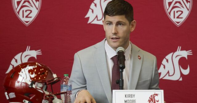 PULLMAN – Kirby Moore usava um terno bege e um sorriso caloroso no dia em que foi apresentado no estado de Washington, onde se tornará o 36º treinador de futebol do programa. Ele disse que estava animado para retornar à sua cidade natal. “E ele acordou muito mais cedo do que queria”, brincou ela, o que costuma acontecer quando você tem um filho de 9 meses.