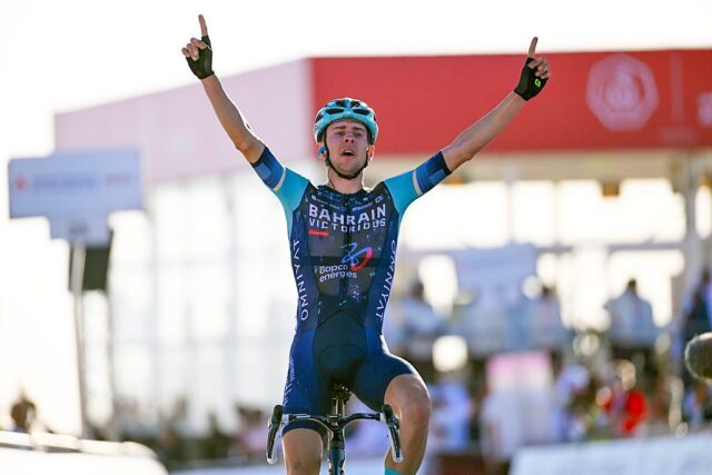 No entanto, o piloto do Bahrein recusou-se a desistir nos quilómetros finais até à meta. e permaneceu bravamente para vencer. E por isso está liderando a competição. Foi a sua primeira vitória desde que venceu o GC no Tour de Luxemburgo em 2024 e a primeira vez que ergueu a arma no ar em mais de três anos.