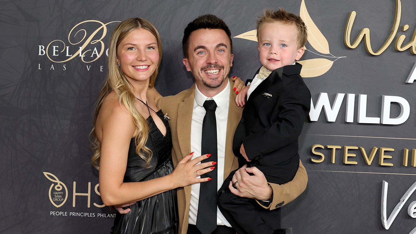 Frankie Muniz posa com sua esposa Paige e seu filho Mouz. (Ethan Miller/Imagens Getty)
