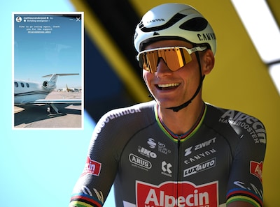Mathieu van der Poel em um jato particular para a Bélgica para sua estreia no Om Loup Het Neussblad.