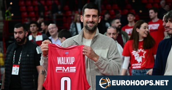 O zagueiro internacional do Olympiakos deu a camisa para Nole.” Ele também deu um abraço caloroso com a lenda do tênis e logo depois Djokovic posou orgulhosamente com sua camisa Walkup.