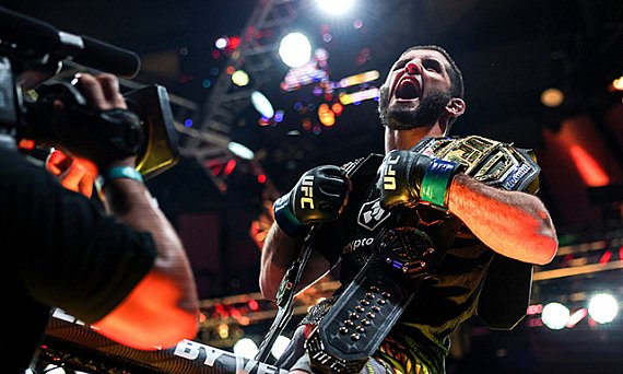 Makhachev defendeu o título dos leves quatro vezes. que é o maior na história desta divisão. antes de subir para a divisão dos meio-médios, a lenda do Daguestão derrotou Jack Della Maddalena de forma dominante para conquistar o título dos meio-médios no UFC 322 em novembro passado.