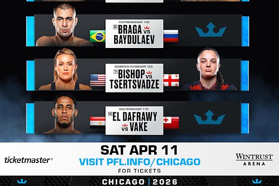 promoção Lançado São três confrontos pelo evento PFL Chicago no dia 11 de abril, um dos quais será coroado pela atração principal de Sergio Pettis-Mitchell McKee. Todas as três lutas acontecerão na Wintrust Arena, em Windy City. Cada novo confronto verá um lutador de nível PFL enfrentando um oponente não classificado.