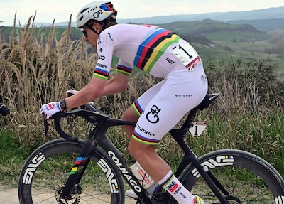 Tadej Pogacar causou forte impressão na primeira corrida de 2026. O campeão mundial esloveno montou um ataque decisivo quase 80 quilômetros antes da linha de chegada. Depois, conquistando a quarta vitória na Strade Bianche, Paul Seixas terminou mais de um minuto atrás, em segundo, depois de retirar Isaac del Toro, que havia terminado em terceiro, nos metros finais.