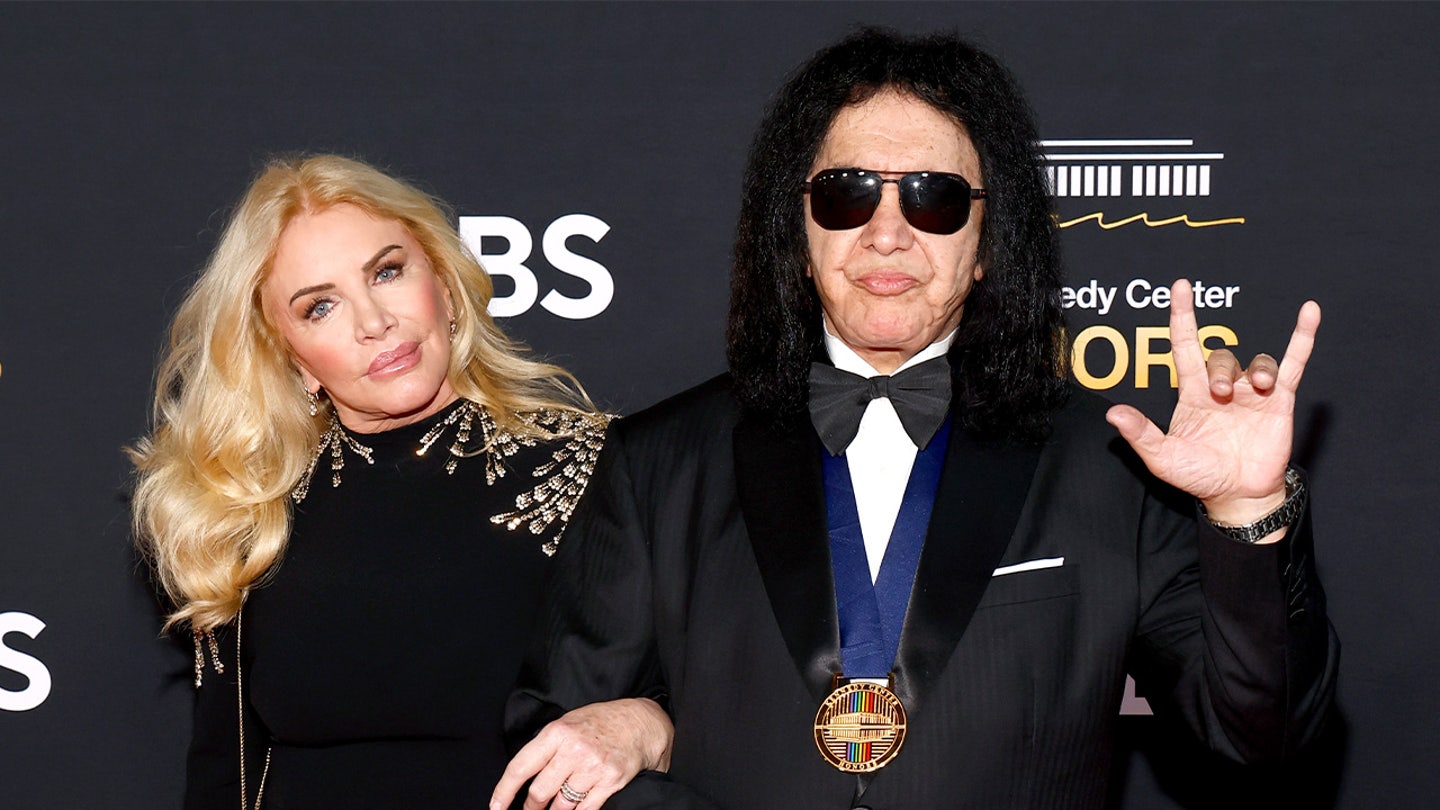 O vocalista do KISS, Gene Simmons, usou seus óculos escuros característicos enquanto caminhava no tapete vermelho com sua esposa Shannon Tweed.