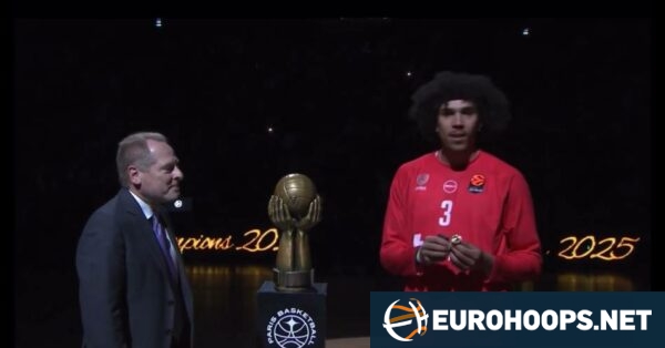 Tyson Ward recebe anel do campeonato da liga nacional de @ParisBasquete! 👏@Olympiacos_BC Atacante homenageado pelo seu antigo clube 🫡