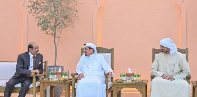 Sua Alteza o Governante de Umm Al Quwain e o Cônsul do Qatar trocaram felicitações e bênçãos pelo mês sagrado, rezando a Deus Todo-Poderoso para devolver esta ocasião à sábia liderança do Iémen e bondade, e ao povo dos Emirados e às nações árabes e islâmicas com progresso e prosperidade.