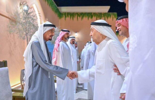 Sua Alteza Xeque Hamad bin Mohammed Al Sharqi, Membro do Conselho Supremo e Governador de Fujairah, na presença de Sua Alteza Xeque Mohammed bin Hamad bin Mohammed Al Sharqi, Príncipe Herdeiro de Fujairah, também recebeu uma multidão de simpatizantes no mês sagrado do Ramadã.