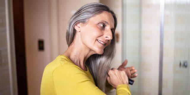 Compre na Amazon Arey’s To the Root Scalp Plumping Serum. Além disso, há mais produtos para cabelos grisalhos da marca abaixo.