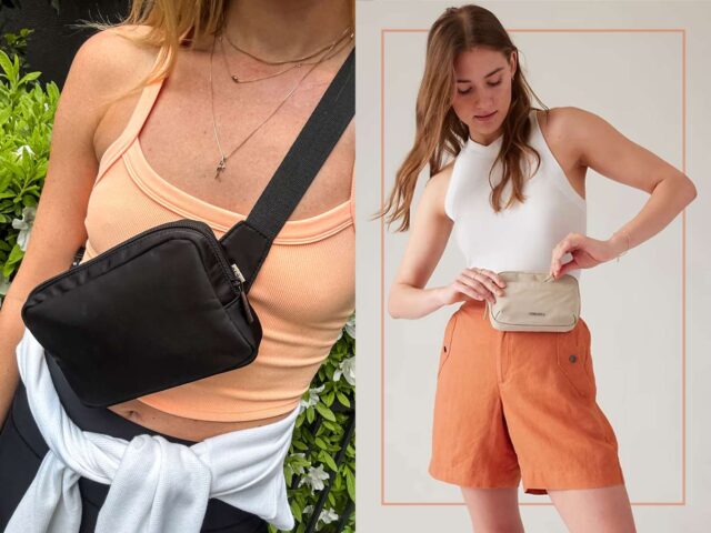 De todas as bolsas de cintura que testamos, nossos editores sempre escolhem esta por seu estilo fácil, cintura longa e conforto. Ao contrário de sua típica pochete de algodão ou couro, ela é feita com o tecido de neoprene exclusivo de Dagne Dover que parece espesso, macio e sofisticado. quando Moda’Os testadores (acidentalmente) derramaram café nele enquanto acampavam e ele rolou para fora da sacola sem deixar rastros, o que foi impressionante. Existem dois bolsos com zíper – um pequeno na frente e outro no bolso principal – que abrigam um pequeno slot para cartão de crédito, gancho para chave e alça ChapStick. A pulseira também parece sólida – grossa, resistente e fácil de ajustar. Ele se estende até 36 polegadas de comprimento, o que nos permite usá-lo facilmente na cruz e mudar um pouco o estilo.