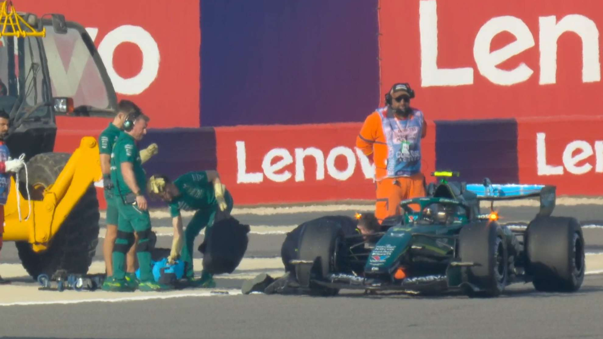 Último dia de propostas para Fernando Alonso Antes que a Austrália acabe De repente e rapidamente. Ele estava fazendo sua primeira longa corrida de inverno com o AMR26, muito lentamente, quando após 28 minutos ouviu o carro desacelerar e finalmente ouviu a caixa de câmbio ou transmissão e peças quebrando. O carro parou Imediatamente antes da curva 5, até parar completamente.