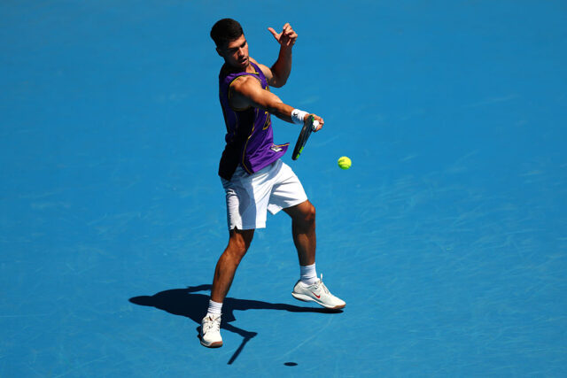 Do lado masculino, o atual campeão do Aberto da Austrália é Jannik Sinner. Seu oponente, o número 1 Carlos Alcaraz, espera completar um Grand Slam de carreira ao vencer seu primeiro Aberto da Austrália. O espanhol até agora conquistou dois títulos cada em Roland Garros, no Aberto dos Estados Unidos e em Wimbledon, mas não conseguiu avançar no Aberto da Austrália até agora – ele ainda não chegou às quartas de final em Melbourne.